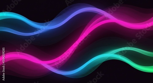 Abstract Neon Waves Flowing Across Dark Background with Gradient Colors