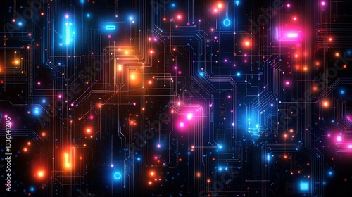 Abstract Network Design with Colorful Lights and Circuit Patterns for Technology Background