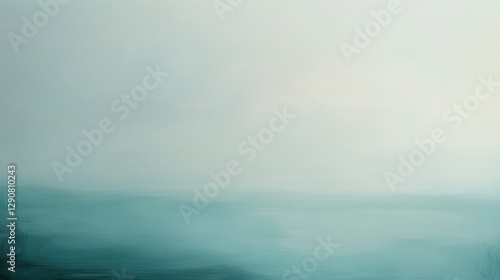 Abstract ocean landscape with soft turquoise and blue gradients. Calm water horizon with misty atmosphere. Serene background for tranquil designs.