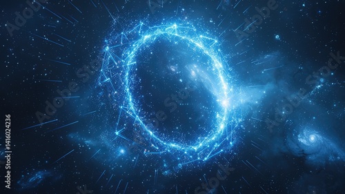 Abstract of blue light particle effect in digital technology design. Seamless modern art of futuristic energy in system structure with diagram pattern perfect for cyberspace style background. AIG53.