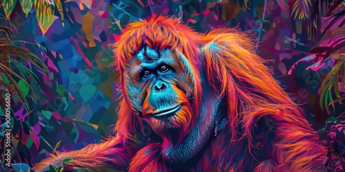 Abstract Orangutan in Colorful Jungle