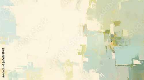 Abstract painting with brushstrokes in green and yellow tones with copy space text. Perfect for modern art, or to represent nature and tranquility.