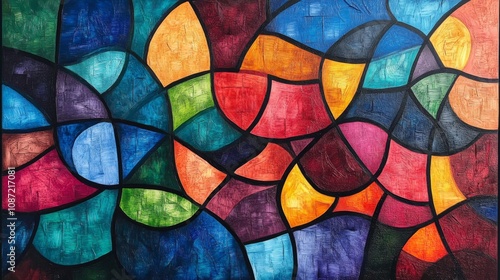 Abstract Painting with Interlocking Shapes and Vibrant Colors