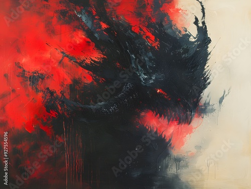Abstract Painting with Red and Black.