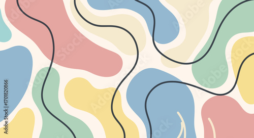 Abstract Pastel Background with Organic Shapes and Wavy Lines For Creating Eye-Catching Designs, Website Headers, Social Media Graphics, and Modern Marketing Materials