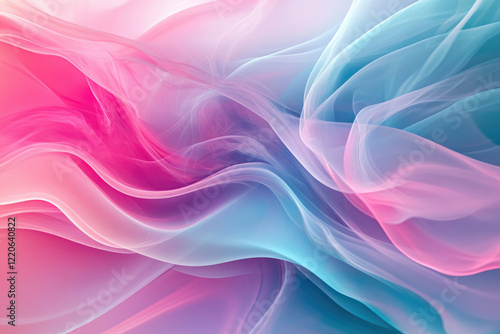 Abstract pastel pink and blue flowing fabric waves, creating a dreamy and ethereal visual.