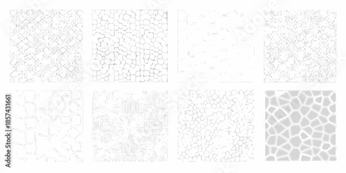 Abstract patterns of interconnected shapes in a grid arrangement
