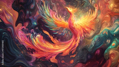Abstract Phoenix Illustration With Colorful Swirling Background