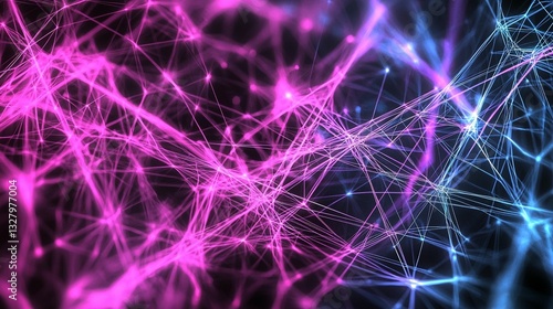 Abstract pink and blue glowing network connection.