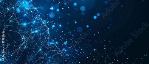 Abstract polygonal background from lines, dots and glowing particles with plexus effect. Artificial intelligence connectivity