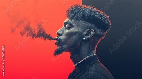 Abstract Portrait Man Exhaling Smoke Red Black Digital Art