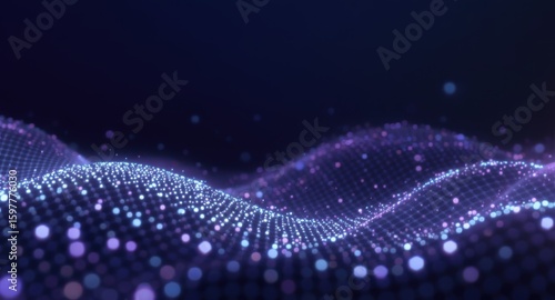 Abstract Purple and Blue Glowing Particle Wave on Dark Background