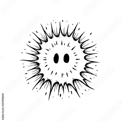 Abstract quirky creature with radiating lines, a whimsical doodle character, simple black and