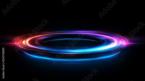 Abstract radial blur with colorful glowing rings, giving the illusion of high-speed rotation, sci-fi design