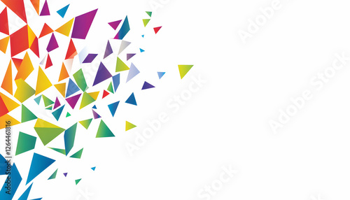 Abstract rainbow triangle explosion; vibrant, colorful geometric design perfect for backgrounds, presentations, and digital art projects.