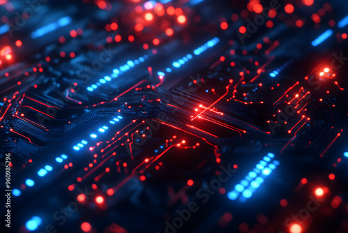 Abstract Red and Blue Circuit Board Background