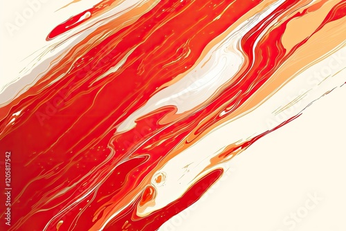 Abstract red and white paint swirls, fluid art, dynamic background.