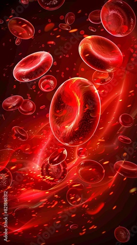 Abstract red blood cells flowing in a vibrant bloodstream visualization