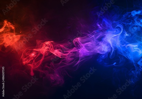 Abstract Red Blue Smoke Fumes Dark Background