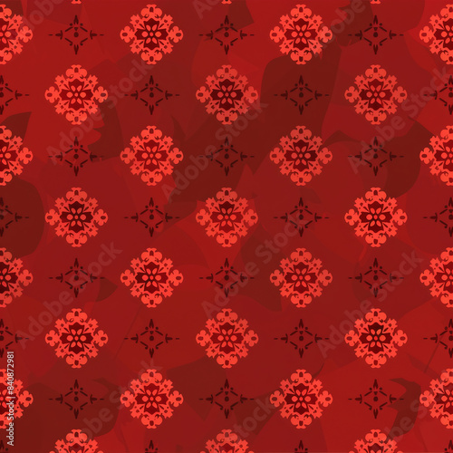 Abstract repeating pattern design with romantic embellishment, red Background or Wallpaper