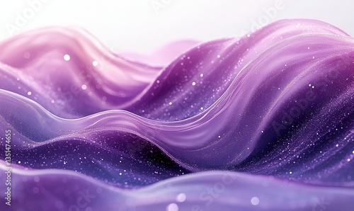 Abstract Silk Waves with Sparkling Particles, Soft Lilac and Purple Hues, Flowing Texture