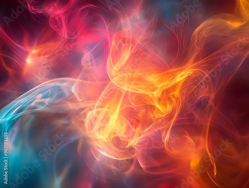 Abstract smoke background with red, orange, and blue colors.