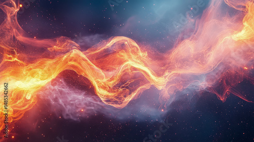 Abstract space: Conceptual cosmic fiery nebula, luminous energy with stars, ethereal galaxy backdrop for a futuristic or scientific presentation