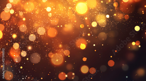 Abstract Sparkling Golden Bokeh Background with Shimmering Lights and Glowing Particles