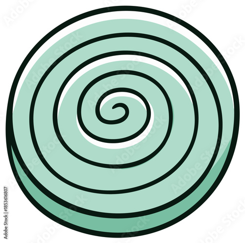 Abstract spiral design in shades of mint green with dark outlines, vector