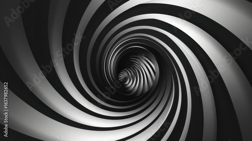 Abstract spiral tunnel design in black and white, featuring dynamic swirling patterns that create a sense of depth and movement, evoking feelings of infinity and exploration