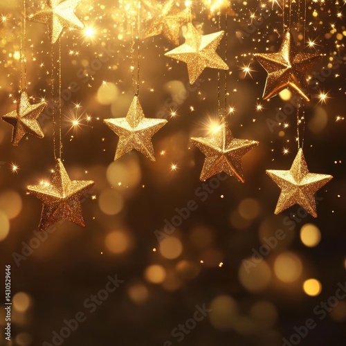 Abstract Stars. Golden Starry Background for Christmas and New Year Celebrations