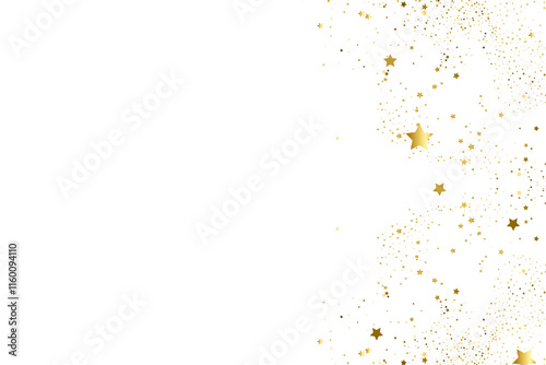 Abstract stars shiny gold glitter background. Stars, splatter, glitter and confetti. Gold Texture. Stars gold dust Light Golden Confetti star. Celebrate banner. Glowing golden particles.