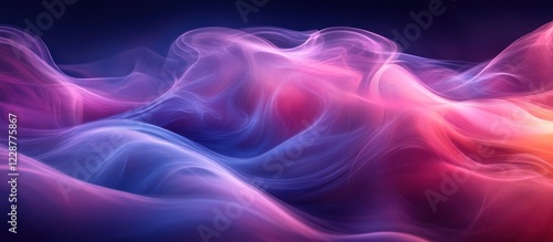 Abstract swirling pink and blue smoke waves.