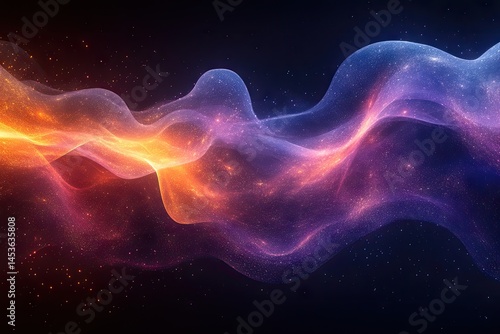 Abstract swirling shapes of luminous particles in space.