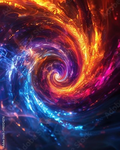 Abstract swirling vortex of fire and ice in vibrant colors.
