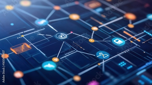 Abstract Technological Background with Interconnected Nodes and Data Transmission
