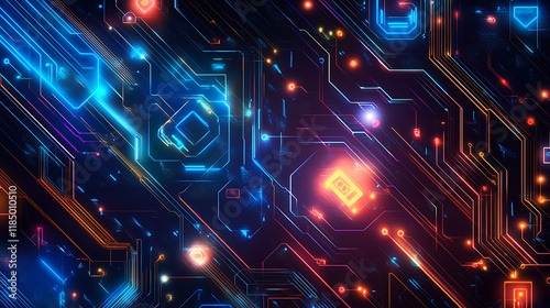 Abstract Technology-Inspired Pattern with Geometric Shapes and Lines