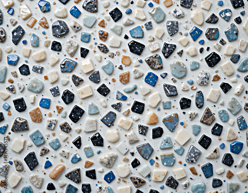 Abstract Terrazzo Texture with Blue and Beige Chips