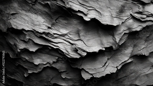 Abstract texture of layered rock formations in monochrome tones.