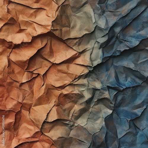 Abstract textured background of crumpled paper in orange and blue.