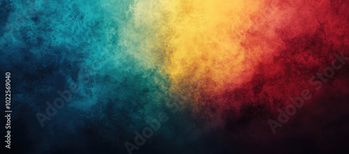 Abstract textured gradient background blending vibrant red, yellow and blue tones with soft grunge effect