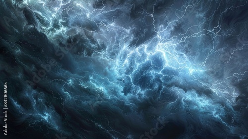 Abstract Thunderstorm Background with Lightning and Swirling Clouds
