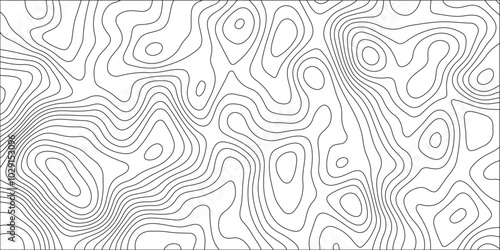 Abstract Topographic Contour Line Pattern. Monochromatic, wavy lines creating a fluid, organic design. Panorama view gradient black & white wave curve lines banner background design.