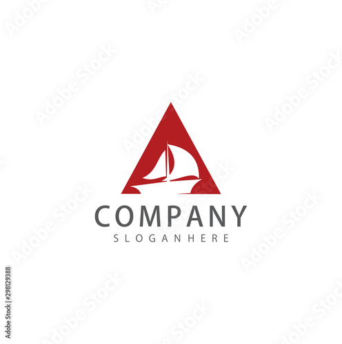 Abstract Triangle Sailing Ship Logo Design . Triangle boat Logo Design Template