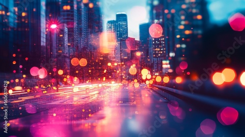 Abstract urban city lights bokeh at night