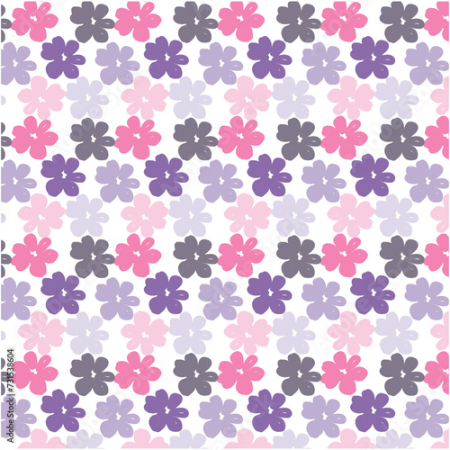 Abstract vector hand-drawn floral bouquet pattern, small flowers, and leaves on a white background.