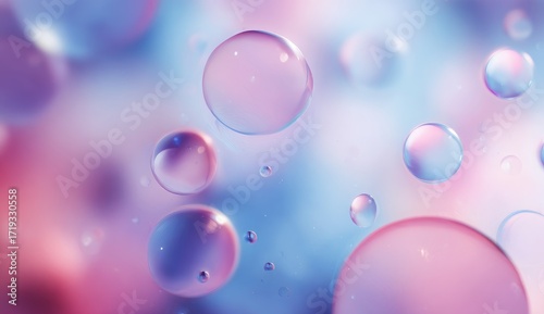Abstract, vibrant, multicolored, oil-water bubbles on soft, pastel background