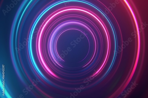 Abstract vibrant neon circular light pattern with blue and pink glowing rings on a dark background. Futuristic and dynamic digital design.