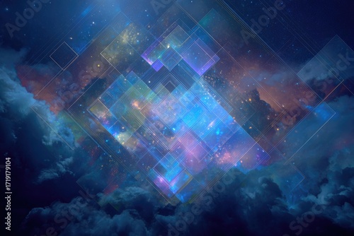 Abstract, vibrant space clouds, diamond shapes