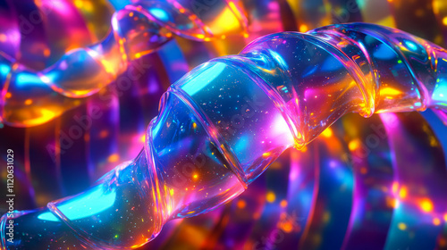 Abstract vivid neon spirals in a colorful digital light display